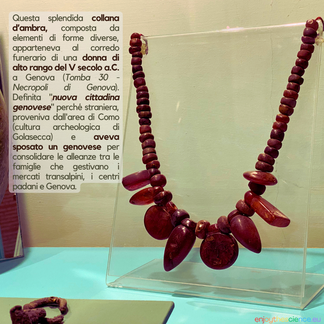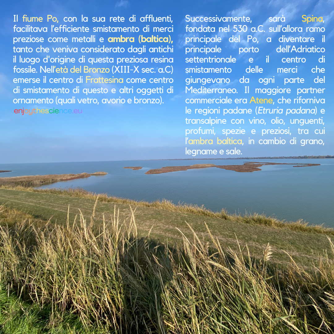 Gli antichi attribuivano all‘ambra proprietà terapeutiche e protettive. Era usata come ornamento e simbolo di status sociale, oltre che come talismano contro il male. Le rotte commerciali dell’ambra, ben documentate da reperti archeologici, convergevano nell’Alto Adriatico (vedi Spina e Frattesina) , una regione strategica che collegava i commerci tra il Nord e il Sud dell’Europa.