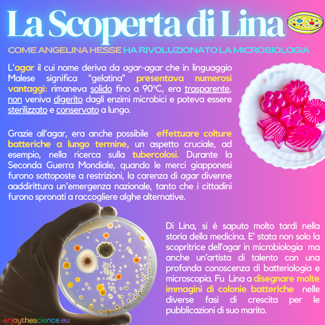 Nonostante il suo contributo, Angelina Hesse è rimasta una figura relativamente sconosciuta nella storia della scienza. Per rendere giustizia alla sua memoria, un team di scienziati e artisti sta creando un fumetto sulla sua vita e sulla sua scoperta. Il progetto, intitolato “The Dessert That Changed The World”, è attualmente in fase di finanziamento su Kickstarter. Questo fumetto promette di portare alla luce la straordinaria storia di Angelina e di ispirare nuove generazioni di scienziati. In definitiva la scoperta dell’agar da parte di Angelina Hesse ha cambiato per sempre il campo della microbiologia. Il suo contributo, sebbene spesso trascurato, ha permesso enormi progressi nelle scienze della vita. È tempo di riconoscere il suo ruolo e celebrare la sua eredità.