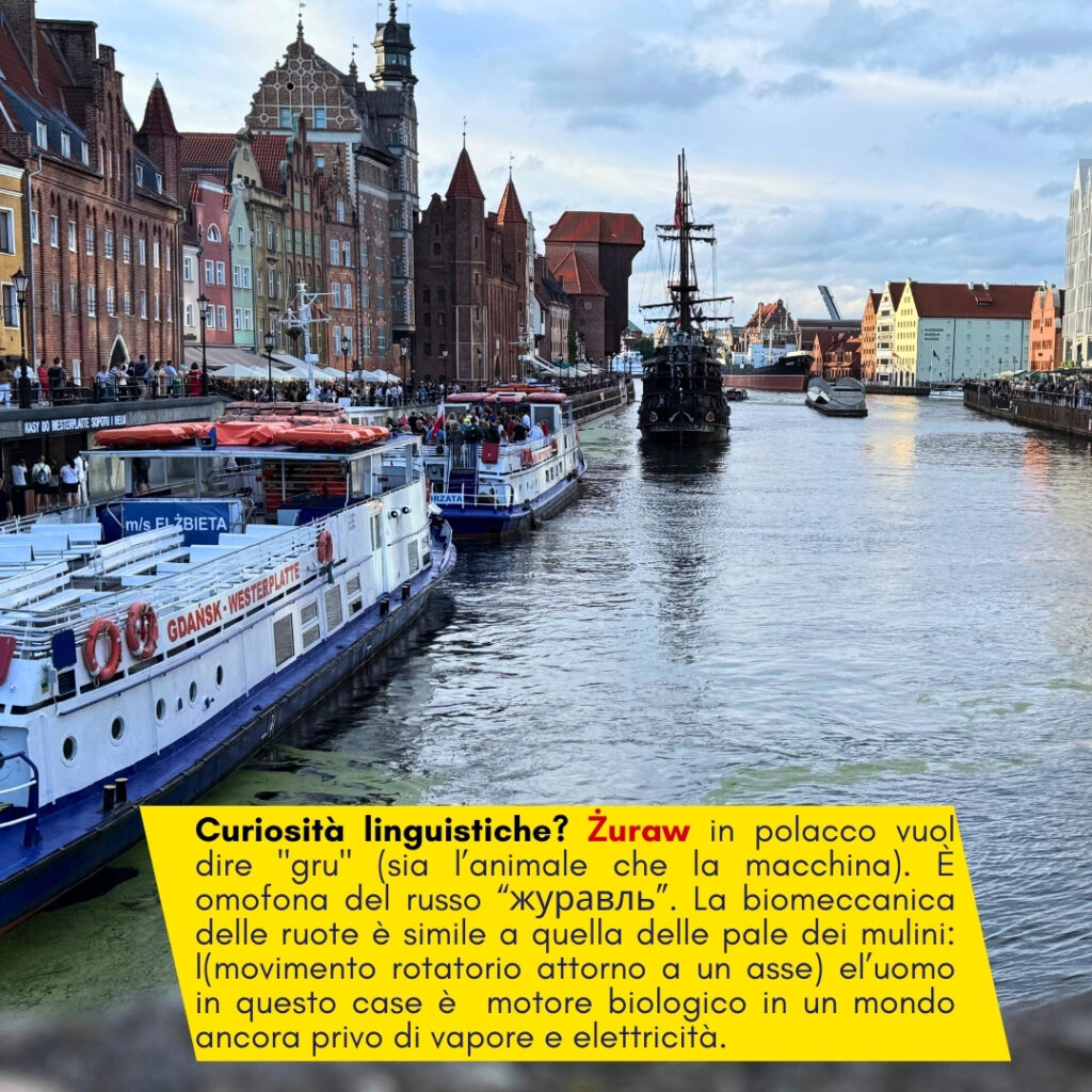 La parola polacca Żuraw significa “gru”, sia come animale che come macchina, ed è omofona del russo “журавль”. Questo legame linguistico ricorda quanto le culture del Baltico fossero intrecciate. Oggi la gru di Danzica è non solo un’attrazione turistica, ma anche un caso-studio internazionale: un ponte tra il sapere empirico medievale e la scienza moderna, tra muscoli e ingegneria, tra economia e tecnologia.
